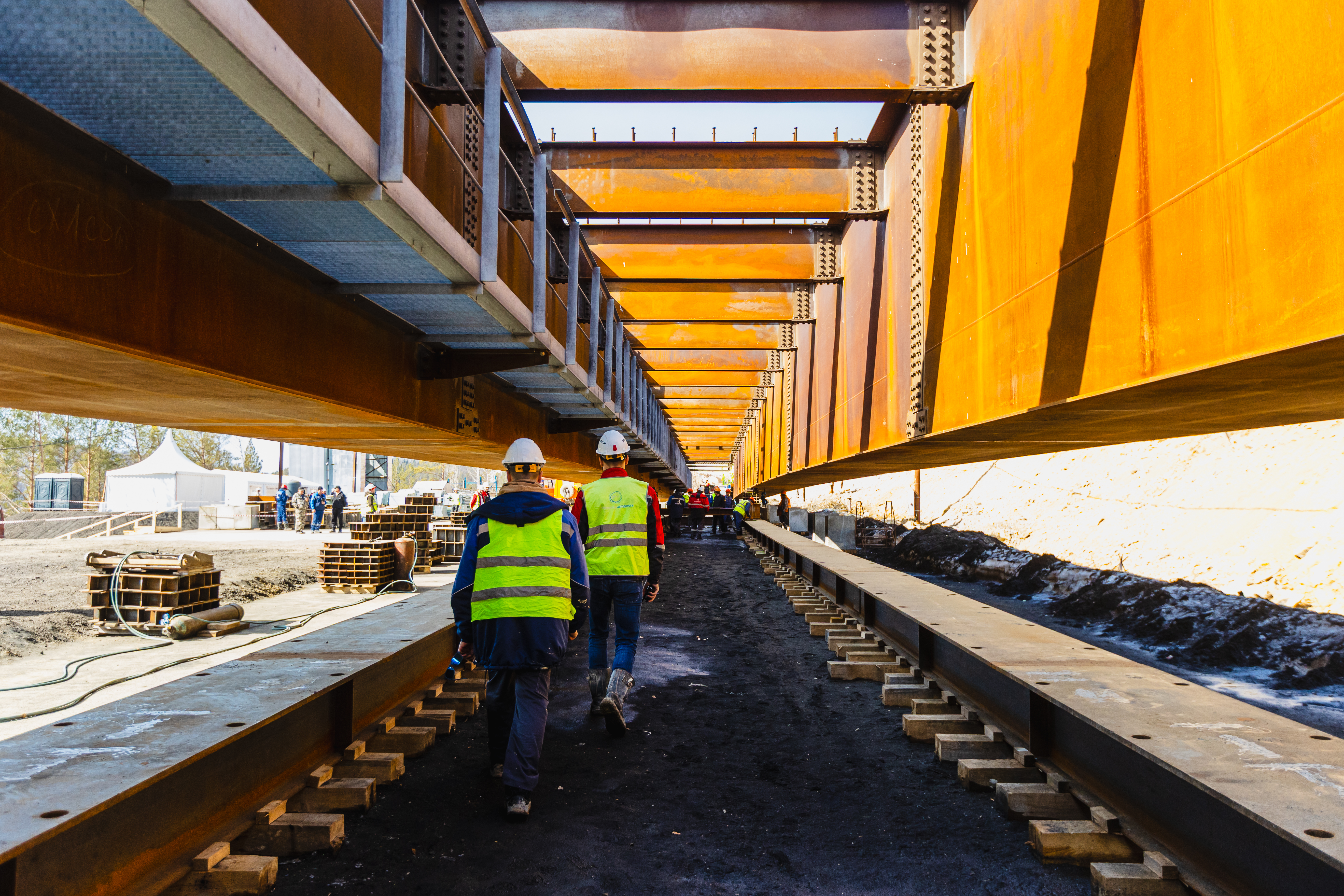 Специалисты завершили первый этап сборки металлоконструкций пролетного строения весом 708 тонн. Также строительные бригады собрали 14 пар балок общей длиной 168 пог. м. В настоящее время уже идет работа по надвижке пролетного строения на вторую опору: металлоконструкцию перемещают примерно на 100 пог. м вдоль оси эстакады.