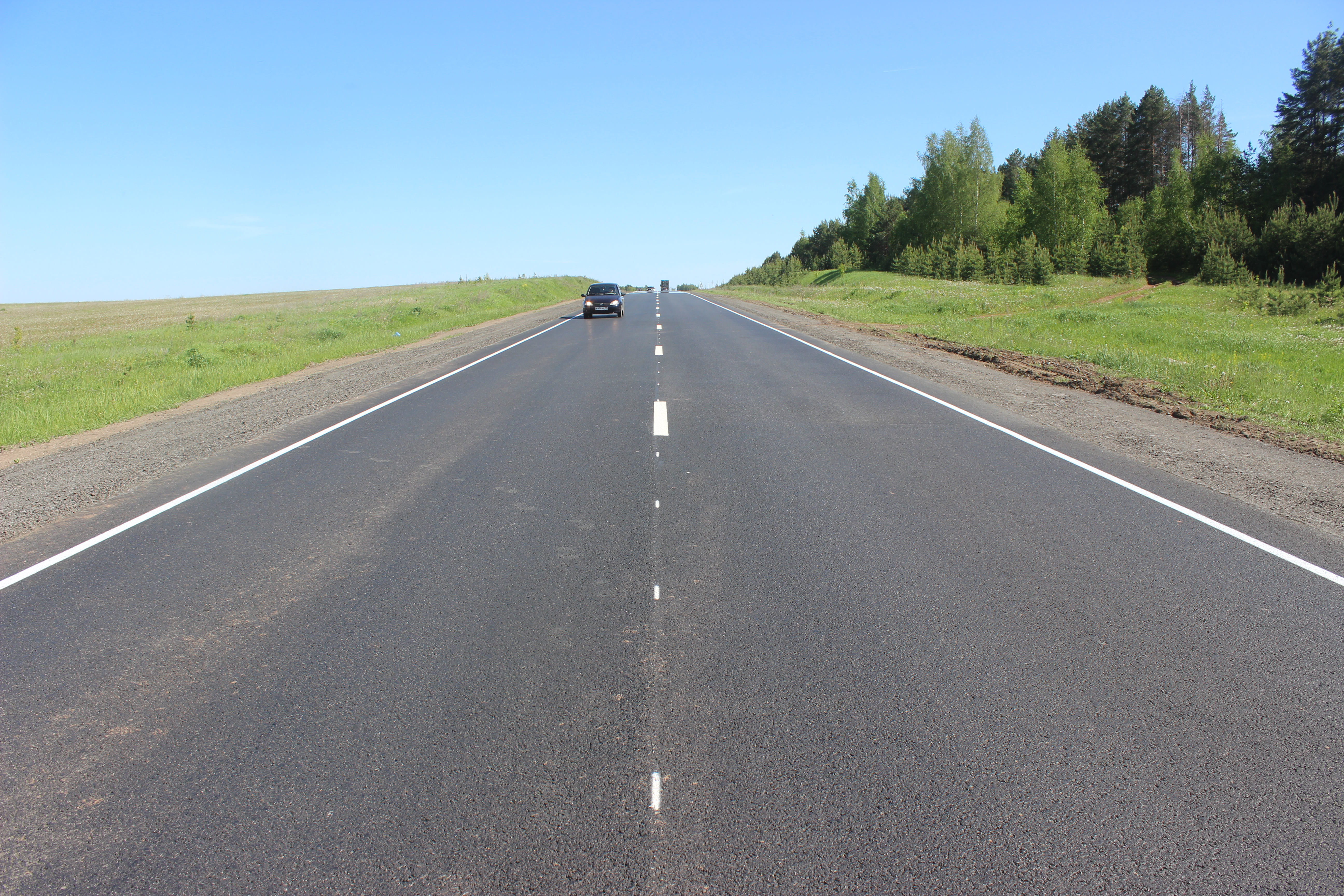 Дорожные работы на объекте стартовали 25 апреля, в процессе ремонта подрядчик полностью заменил два слоя асфальтобетонного покрытия, отремонтировал съезды, отсыпал и укрепил обочины.